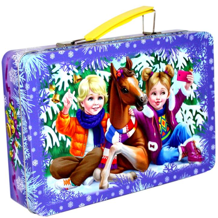 Сладкий подарок на Новый Год в жестяной упаковке весом 600 грамм