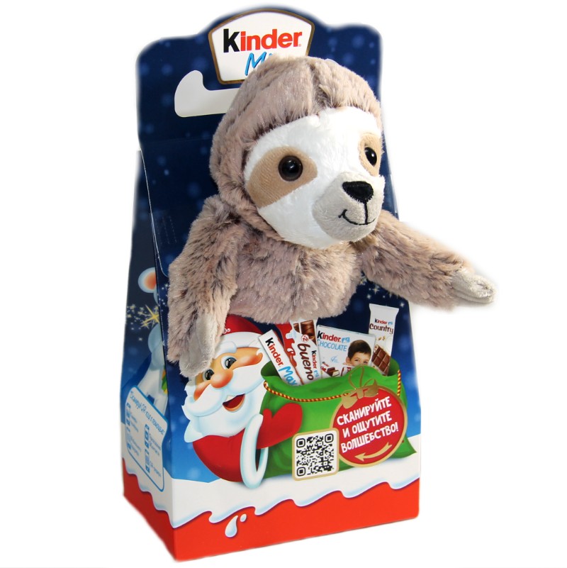 Оригинальная мягкая упаковка в виде символа года с лучшим набором сладостей и шоколадом от Киндер очень понравится ребенку.