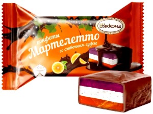 Десерт с печеньем (1 шт), Французский зефир (1 шт), Мармеладная долька (1 шт), Суфле в шоколаде (1 шт), Фруктовое суфле (1 шт), Вафельная конфета (1 шт), Конфеты "Золотой степ" (1 шт), Конфеты "Левушка" (1 шт)