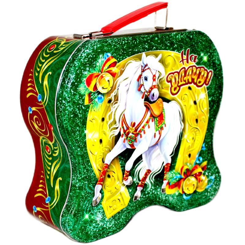 Детский новогодний подарок в жестяной упаковке весом 1000 грамм
