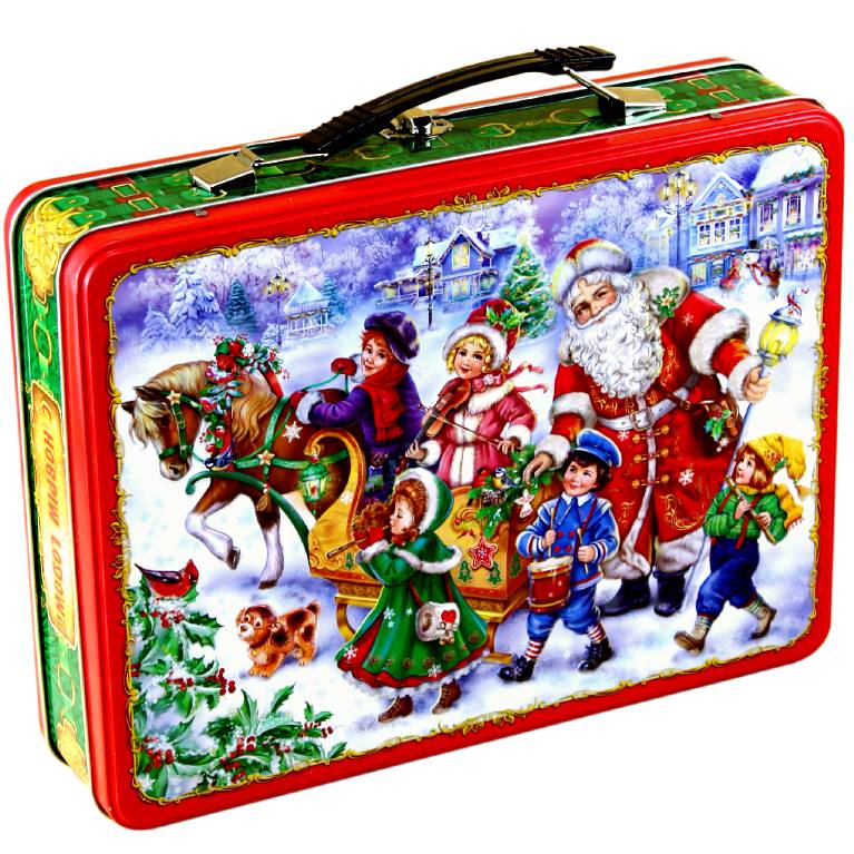 Детский новогодний подарок в жестяной упаковке весом 1500 грамм