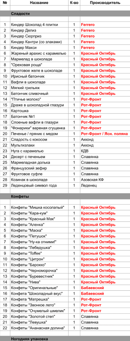 1. Проверить, можно ли внести изменения в состав подарка. Если нет, то скорее всего наборы были собраны еще летом из конфет, произведенных еще раньше