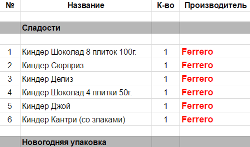 Опубликовано в Составы подарков